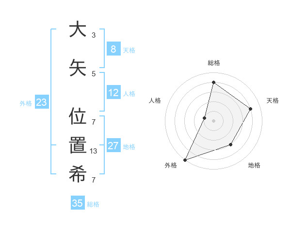 大矢 位置希さんを姓名の画数から五運を鑑定