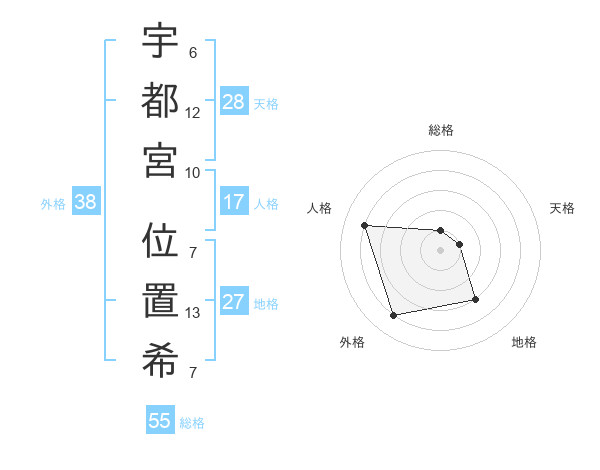 宇都宮 位置希さんを姓名の画数から五運を鑑定