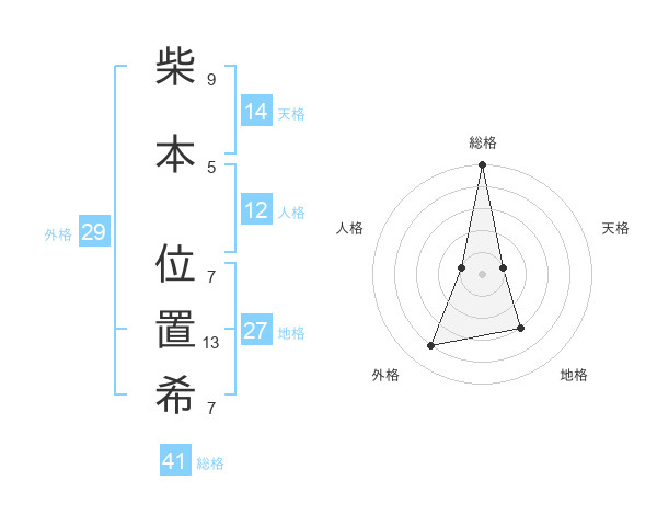 柴本 位置希さんを姓名の画数から五運を鑑定