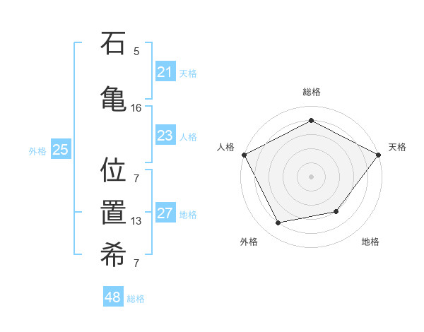 石亀 位置希さんを姓名の画数から五運を鑑定