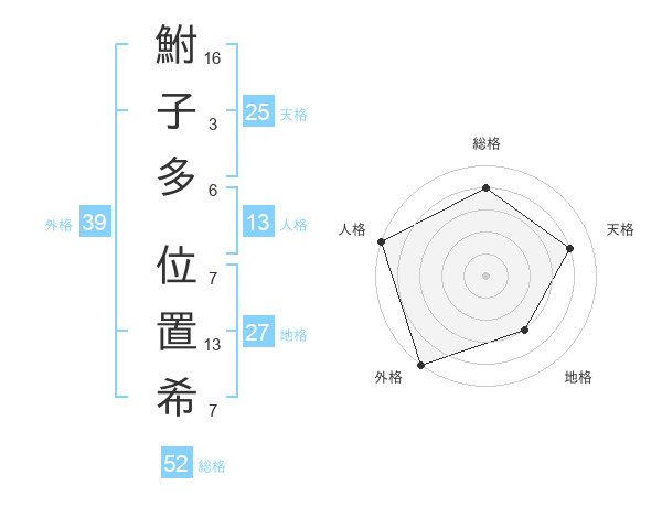 鮒子多 位置希さんの総格は52画の4点