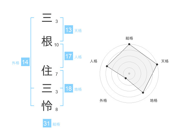三根 住三怜さんを姓名の画数から五運を鑑定
