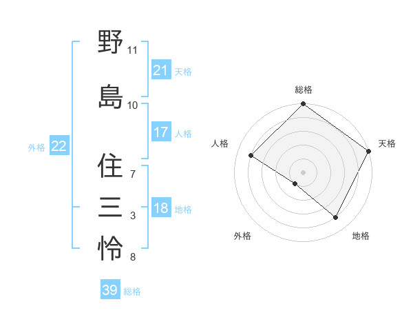 野島 住三怜さんを姓名の画数から五運を鑑定