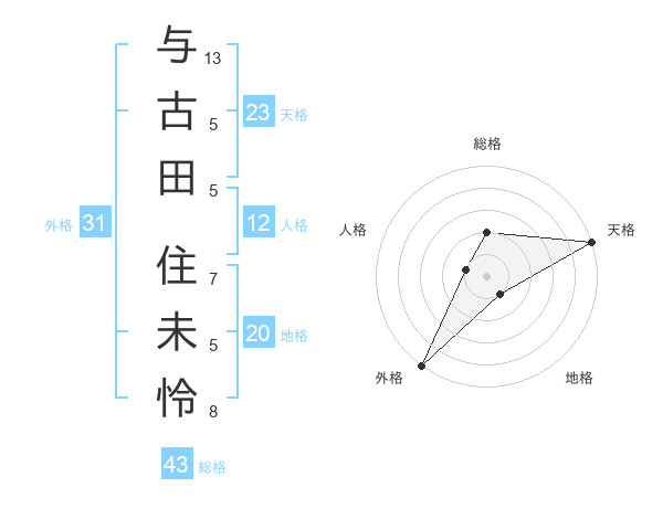 与古田 住未怜さんの外格は31画の5点!