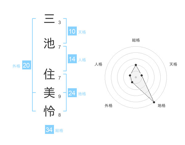 三池 住美怜さんの総格は34画の2点!