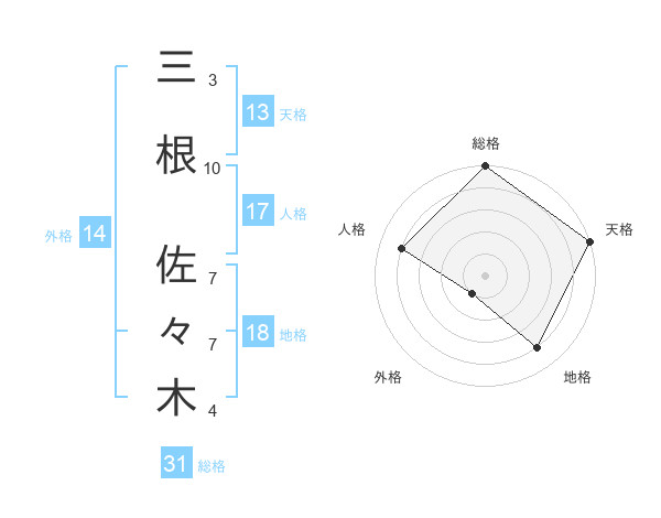 三根 佐々木さんを姓名の画数から五運を鑑定
