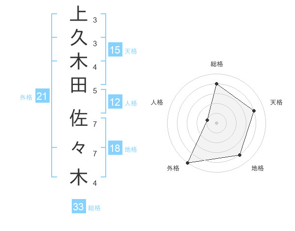 上久木田 佐々木さんの総格は33画の4点