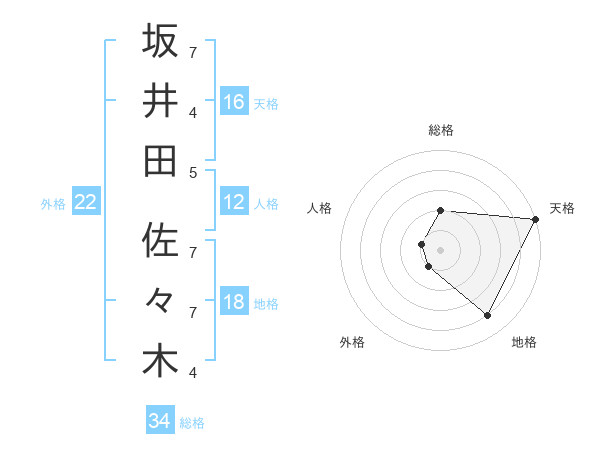 坂井田 佐々木さんの総格は34画の2点!
