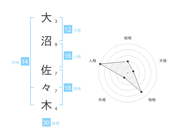 大沼 佐々木さんを姓名の画数から五運を鑑定