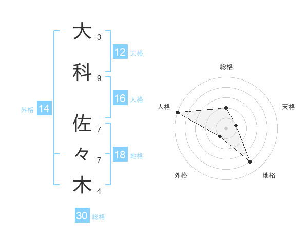 大科 佐々木さんの総格は30画の2点!