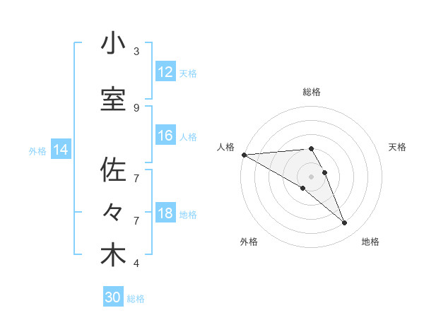 小室 佐々木さんの総格は30画の2点!