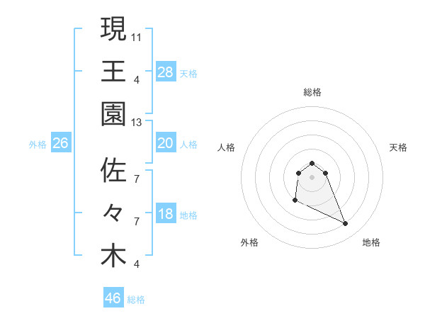 現王園 佐々木さんを姓名の画数から五運を鑑定