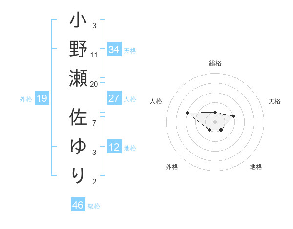 小野瀬 佐ゆりさんの総格は46画の1点!