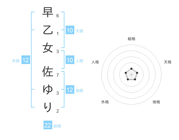 早乙女 佐ゆりさんを姓名の画数から五運を鑑定