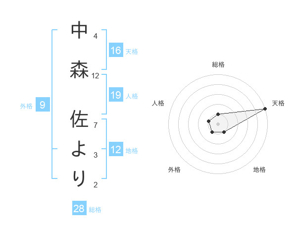 中森 佐よりさんの天格は16画の5点!
