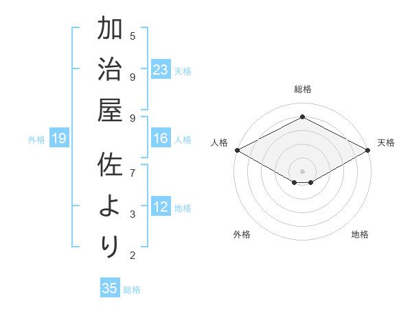 加治屋 佐よりさんを姓名の画数から五運を鑑定