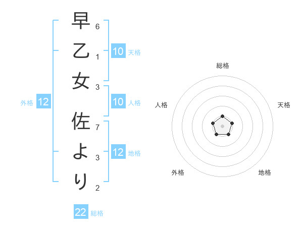 早乙女 佐よりさんの総格は22画の1点