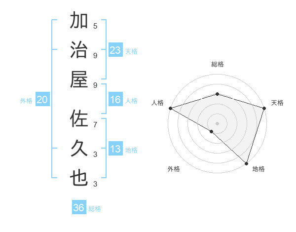 加治屋 佐久也さんを姓名の画数から五運を鑑定