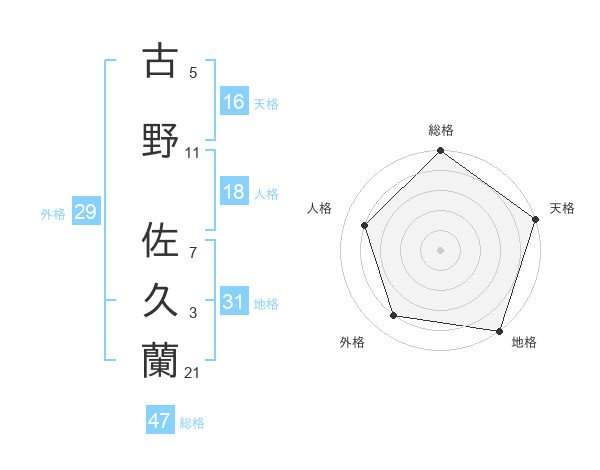 古野 佐久蘭さんを姓名の画数から五運を鑑定