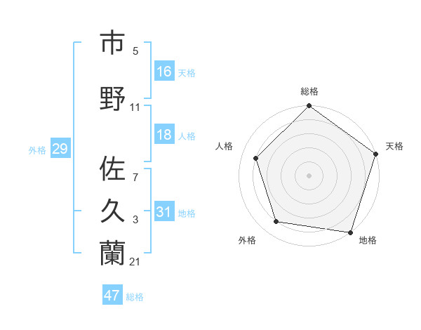 市野 佐久蘭さんの総格は47画の5点!