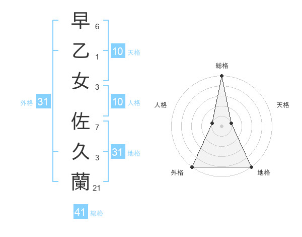 早乙女 佐久蘭さんを姓名の画数から五運を鑑定