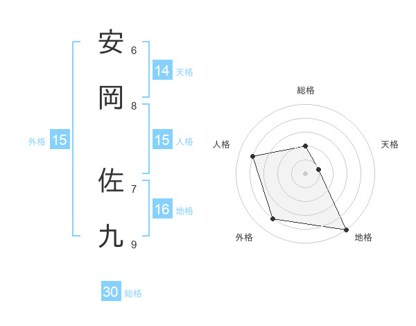 安岡 佐九さんを姓名の画数から五運を鑑定