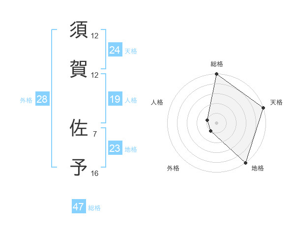須賀 佐予さんの総格は47画の5点!