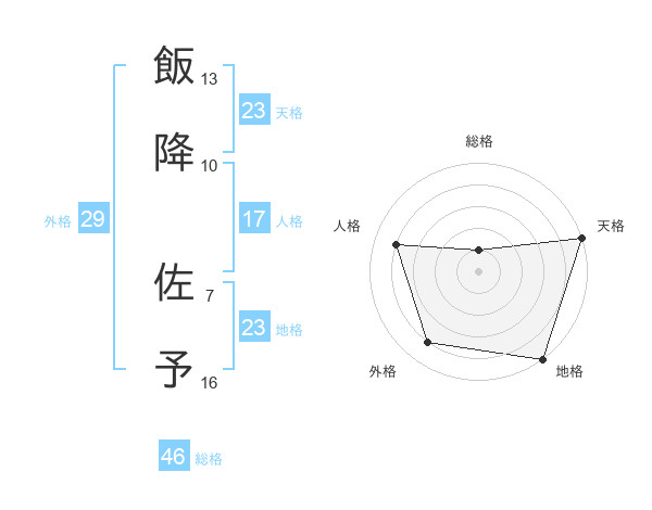 飯降 佐予さんの天格は23画の5点!