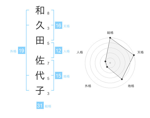 和久田 佐代子さんを姓名の画数から五運を鑑定