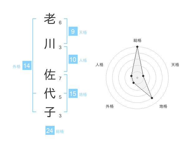 老川 佐代子さんの総格は24画の5点!