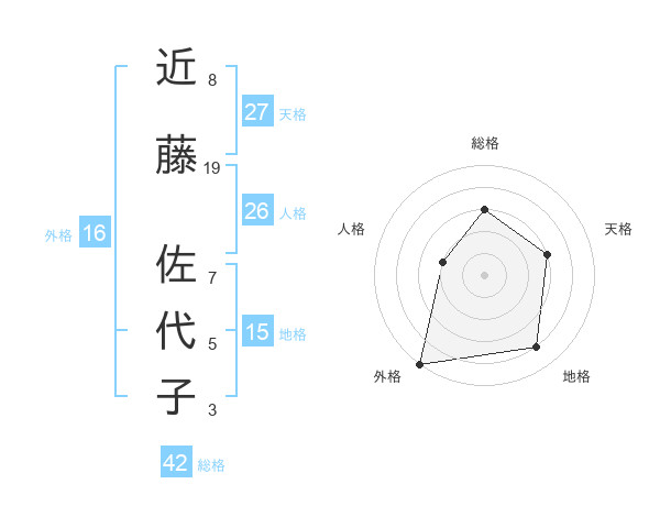 近藤 佐代子さんの総格は42画の3点!