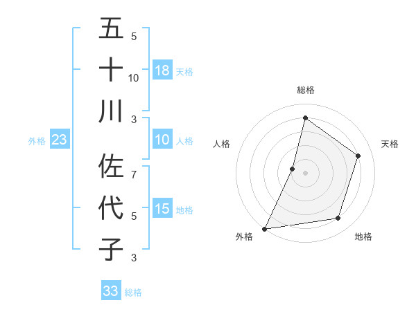 五十川 佐代子さんを姓名の画数から五運を鑑定