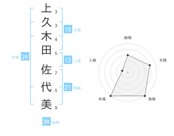 上久木田 佐代美さんを姓名の画数から五運を鑑定