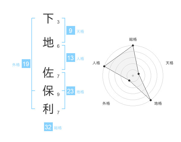 下地 佐保利さんの総格は32画の5点!