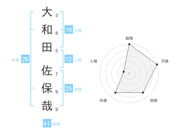 大和田 佐保哉さんを姓名の画数から五運を鑑定