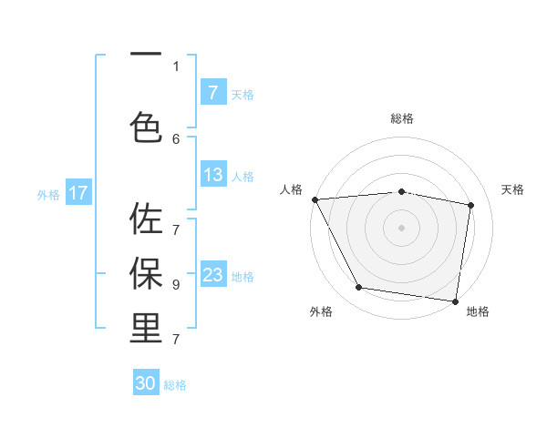 一色 佐保里さんの外格は17画の4点!