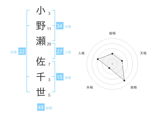 小野瀬 佐千世さんを姓名の画数から五運を鑑定