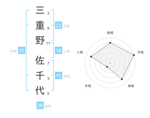 三重野 佐千代さんを姓名の画数から五運を鑑定