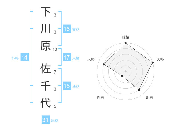 下川原 佐千代さんを姓名の画数から五運を鑑定