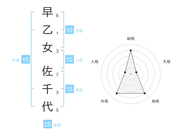 早乙女 佐千代さんを姓名の画数から五運を鑑定
