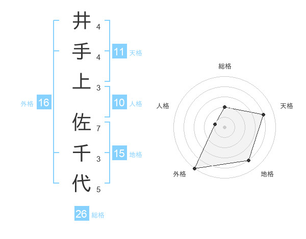 井手上 佐千代さんを姓名の画数から五運を鑑定