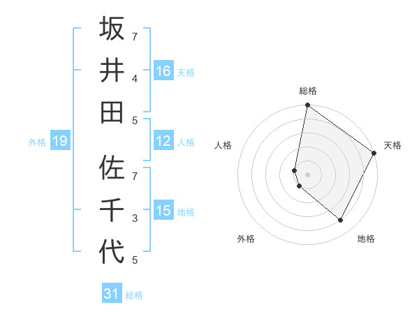 坂井田 佐千代さんを姓名の画数から五運を鑑定