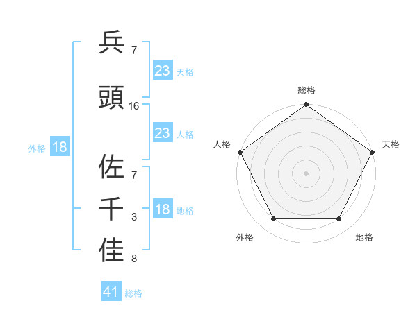 兵頭 佐千佳さんの天格は23画の5点!