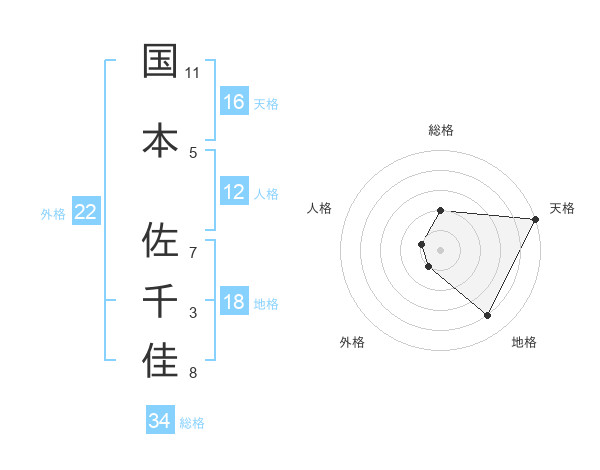 国本 佐千佳さんの天格は16画の5点!
