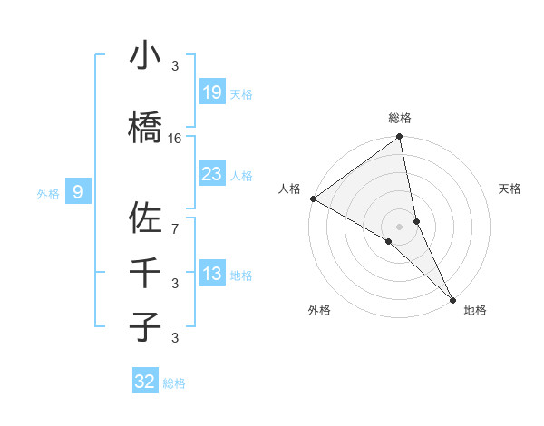 小橋 佐千子さんの総格は32画の5点!