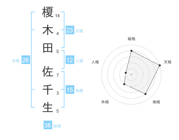 榎木田 佐千生さんの天格は23画の5点!