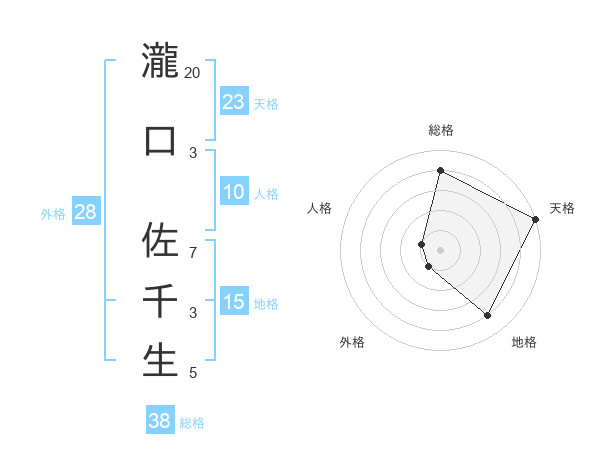 瀧口 佐千生さんを姓名の画数から五運を鑑定