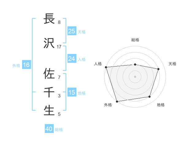 長沢 佐千生さんを姓名の画数から五運を鑑定