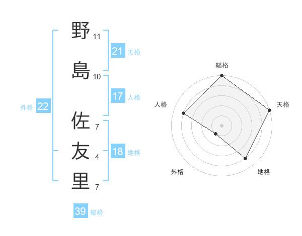 野島 佐友里さんの総格は39画の5点!