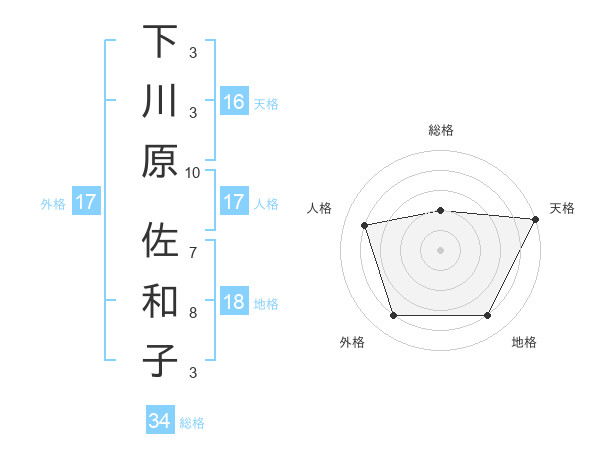 下川原 佐和子さんを姓名の画数から五運を鑑定